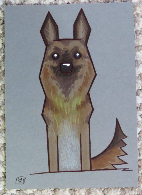 Dog - Alsation Marker, biro, coloured pencil and white paint on A5 148x210mm grey 250gsm paper £20